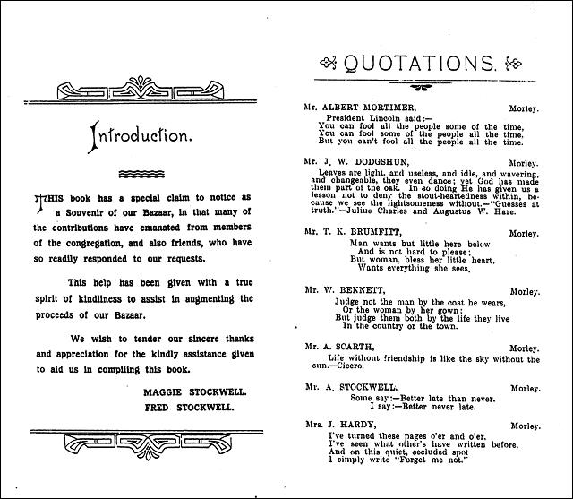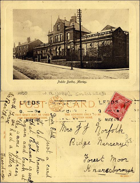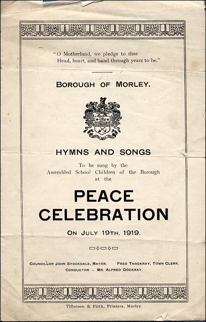 1910 – 1919 Winners of the T.K. Brumfitt Cup Wedding photo of Mr. and Mrs. J. H. Brumfitt A large mixed group in summer dress at Morley Tennis Club, Scatcherd Lane John H Brumfitt and offspring with other members at Morley Tennis Club, Scatcherd Lane, Morley John H Brumfitt, his wife May and other members at Morley Tennis Club, Scatcherd Lane The Football team at Parkfield Mill Morley May Synod, Ebenezer Primitive Methodist Chapel Quotations and recipes from 1910 Bazaar held in Morley Town Hall Three Sunday School Cradle Rolls from Ebenezer Chapel A group Choral Whitsuntide Sing on Morley Town Hall Steps Quilting done by members of Zion Chapel, Morley The old mill at Cockersdale ‘Gertrude’, the steam engine used in the Crank Mill The Manor House in King Street, Drighlington King Street, Drighlington scene looking towards Morley King Street, Drighlington King Street, Drighlington, looking towards the crossroads Looking down King Street, Drighlington from Three Road End Three Road Ends, Drighlington Outside Mr. Clayton’s shop, Drighlington Lumb Hall, Drighlington Lumb House in Drighlington The old bridge on Station Road The arrival of the first tram from Leeds at Morley Town Hall Looking towards Hughenden, a mansion on Rooms Lane Committee of The Morley Mutual Fire Insurance Co. Ltd Studio photograph of Maud Irene Furness Obituary of Mr. Albert Furness in the Morley Observer A Horse and Coach, described as a Shabby Turn-Out at a Carnival Illuminations on the Town Hall for the Coronation of King George V A family portrait of the Ingles of Churwell Formal portrait of William Law Ingle as Mayor of Morley Borough Janet Ingle as Mayoress Mr H.H. Asquith leaving the Town Hall with his daughter and Mr. & Mrs. W.L. Ingle Mr Asquith with West Riding mayors at Mr. W.L.Ingle’s garden party Prime Minister H.H. Asquith, his daughter, guests at Morley Grange after the Freedom Ceremony Ingham Akeroyd’s Coal Delivery Horse and Cart Cockersdale Carnival with a Horse and cart Class 3 Photo Westerton School Tingley Photo of locals celebrating St. George Day Atlas Vulcana, Family Strong act Alfred Suddick in Miner’s clothes Brumfitt family Wedding group Maurice Butterfield Tetley In front of Upper Rooms Farm, Rooms Lane, Morley Programme for the Opening of Lewisham Park Percy Fielding in his soldier’s uniform during World War 1 The New Pavilion Theatre Labour certificate for John Fothergill, born 31.3.1903 Group of men in Durham Light Infantry. Somme 1916 Peace medal given to schoolchildren by Morley Council Henry Ainley in middle age Portrait of Florence Dove Private Maurice Butterfield Tetley, Royal Veterinary Corps View of Lodge in Dartmouth Park, Morley Florence Amelia Dode working in munitions overalls Portrait of Nellie Peel and Emily Peel as young girls Family group of the Gilpins The Morley Corporation Public Baths Gypsy caravan and occupants at Brow Wood, Morley Sergeant Joseph Clough in his uniform Gildersome National School-Winners of the T.K. Brumfitt Cup Songsheet for the Peace celebration at Morley Town Hall The Wedding of Fred Turner and Laura Glover Related Images: